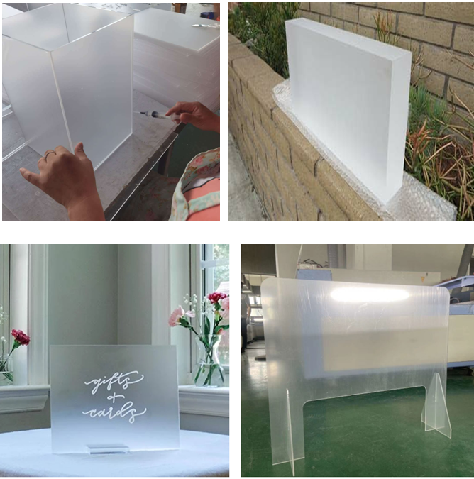 Les feuilles d'acrylique mat peuvent offrir un panneau acrylique dépoli grossier, un panneau acrylique dépoli fin. Il peut également être fabriqué d'un côté avec de l'acrylique dépoli uniquement, il peut également être fabriqué de deux côtés avec de l'acrylique dépoli.